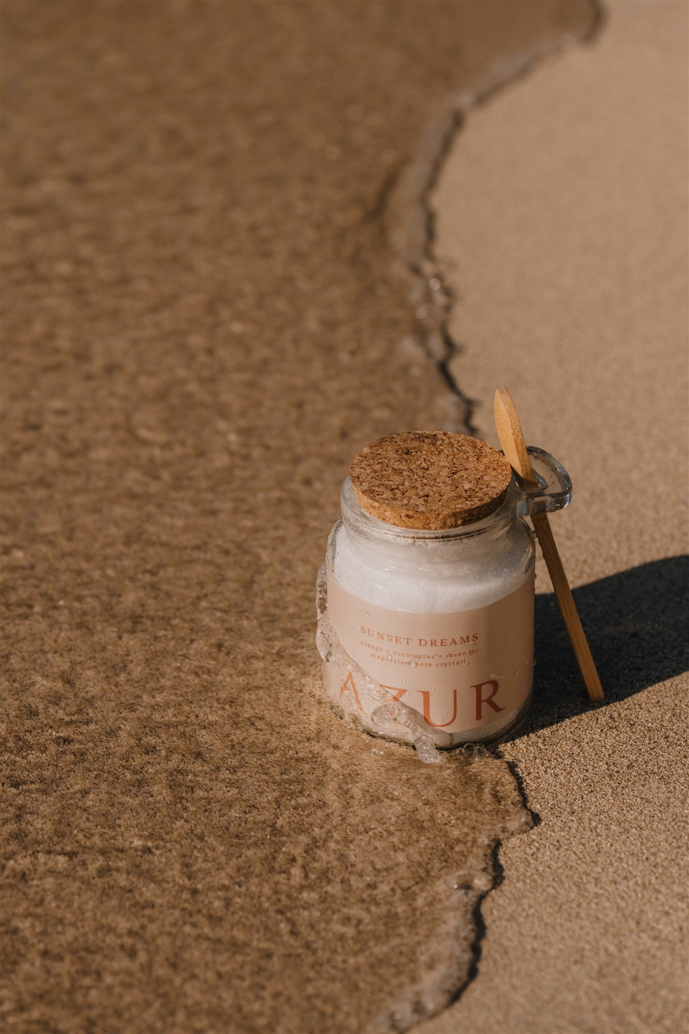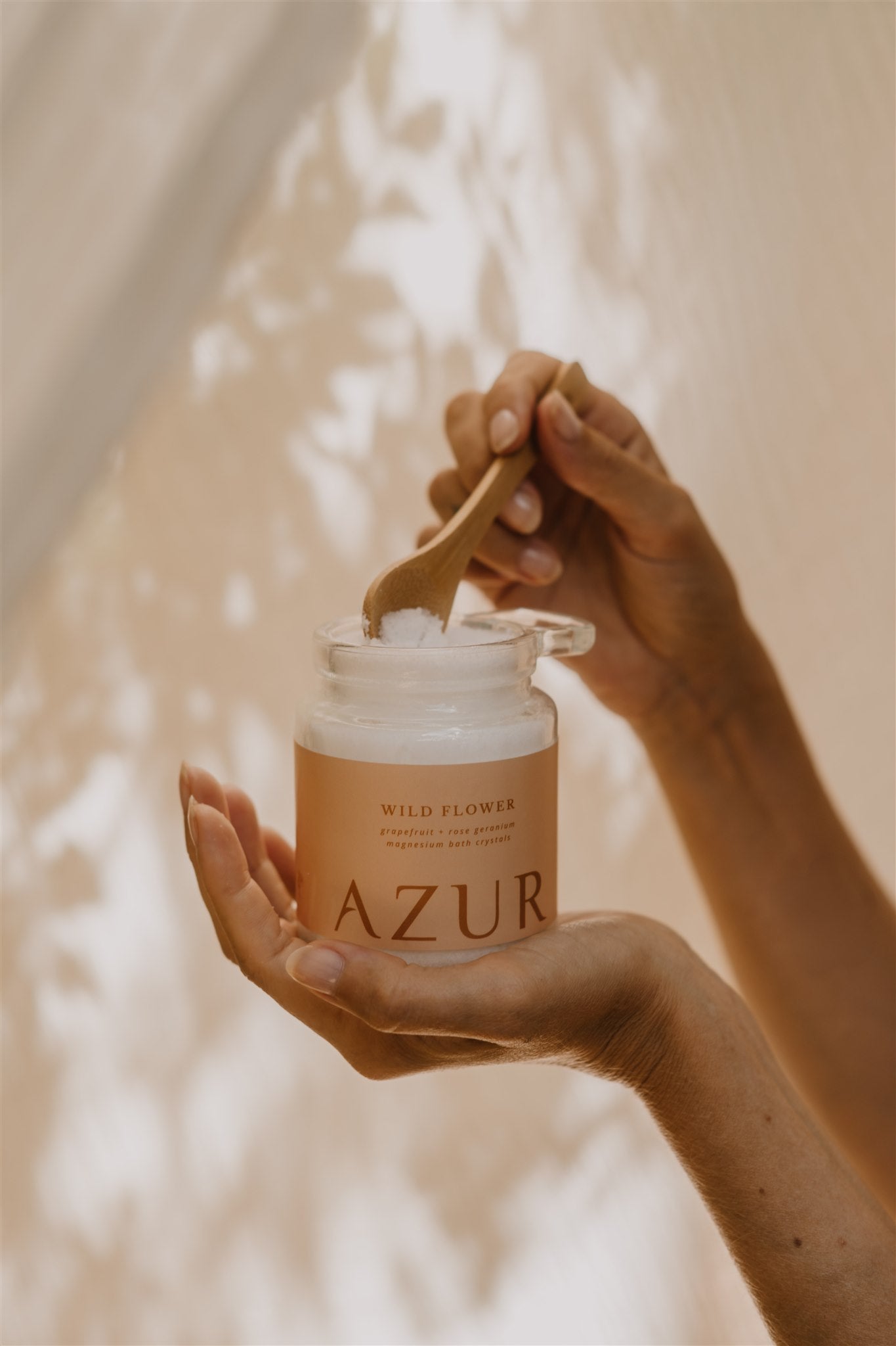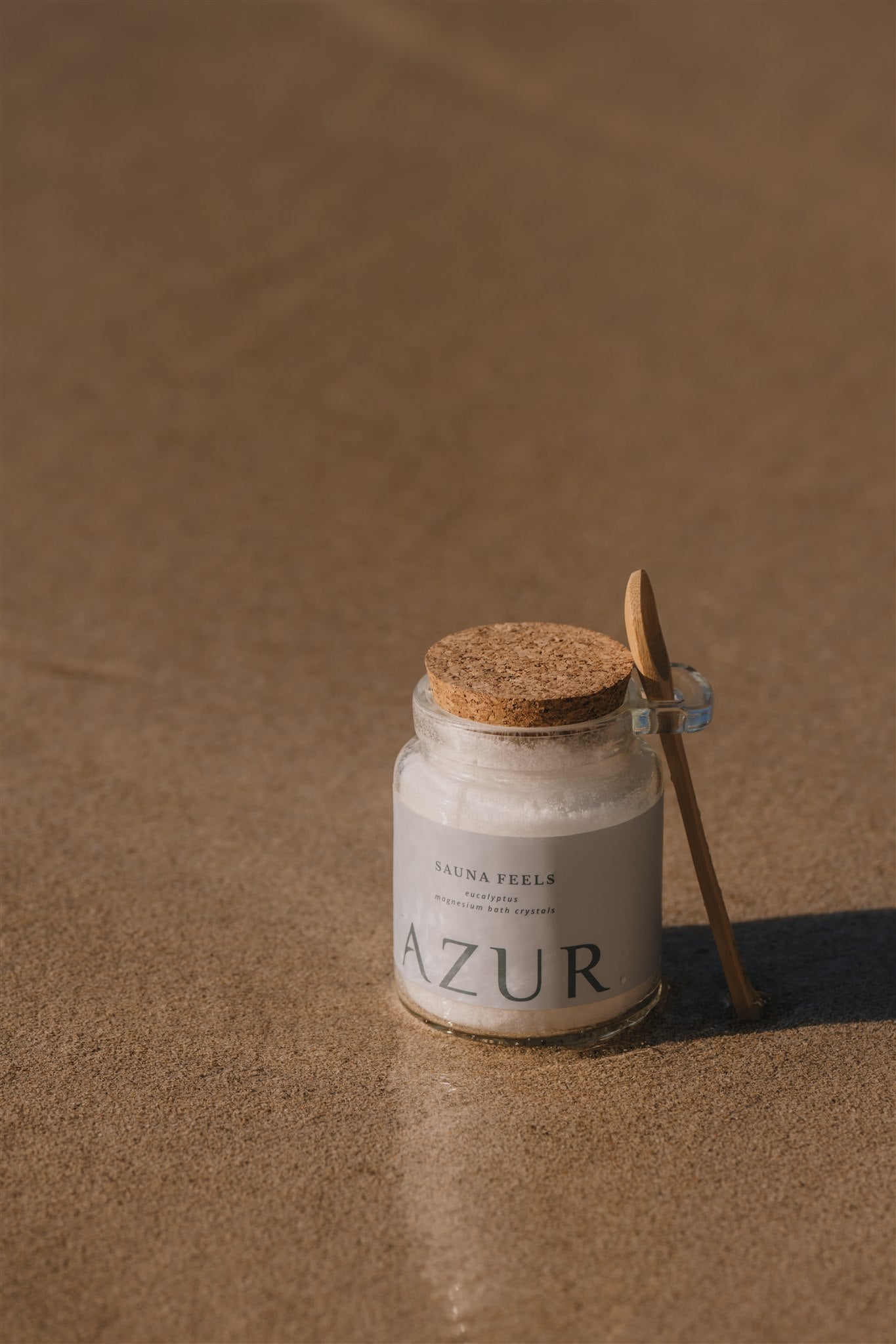 A luxurious bath ritual in a glass jar with bamboo spoon. These bath salts are made with pure magnesium salt, known for its muscle-relaxing effect and skin-loving benefits. Enriched with sweet almond oil, they leave the skin feeling soft and nourished.